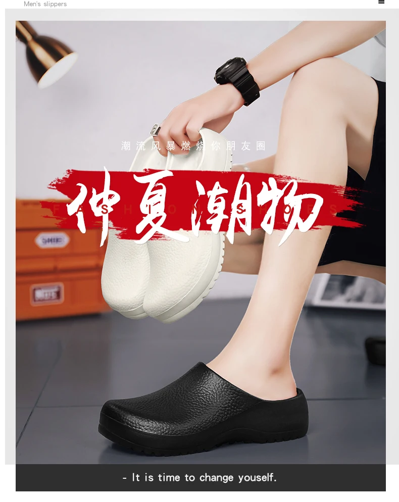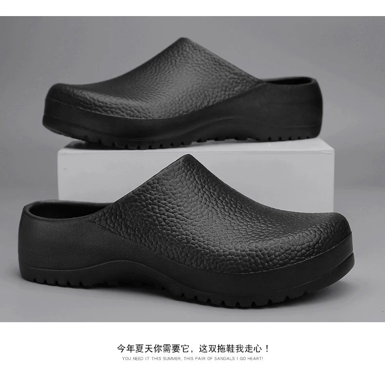 These non slip kitchen shoes are made from high-quality EVA material, known for its durability and lightweight properties. They are designed to keep you comfortable and safe in kitchen environments, offering excellent traction and cushioning. The shoes feature: