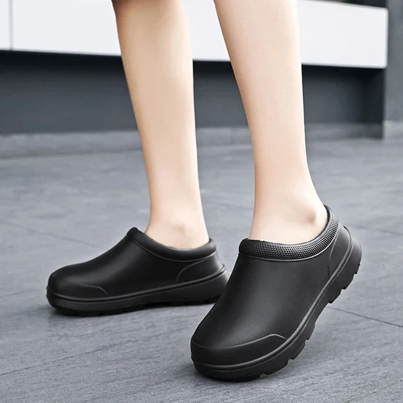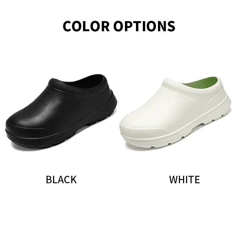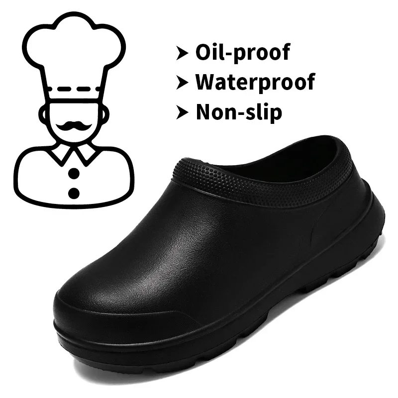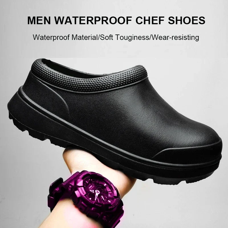 The non-slip restaurant shoes are designed to keep you safe and comfortable throughout long hours on your feet. With a durable, slip-resistant outsole, these shoes are built to handle wet and greasy surfaces commonly found in kitchens and restaurants. The waterproof feature makes them easy to clean, so you can maintain a professional look and hygiene standards. The hard-wearing EVA upper material ensures that these shoes can withstand the rigors of daily use, providing lasting durability.