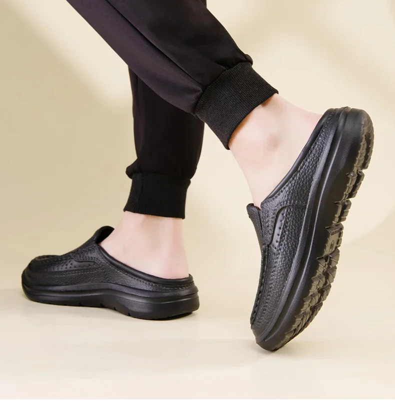 These non slip restaurant shoes combine comfort, functionality, and durability, making them an excellent choice for everyday wear in various environments. The EVA injection material ensures a lightweight and breathable design, keeping your feet comfortable even during extended hours. The slip-resistant sole enhances safety, offering stability on wet or greasy surfaces, making them ideal for both casual and work settings, including restaurant kitchens or beach outings.