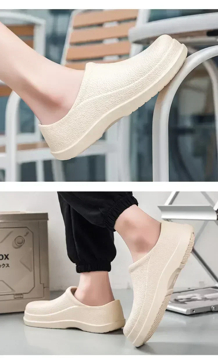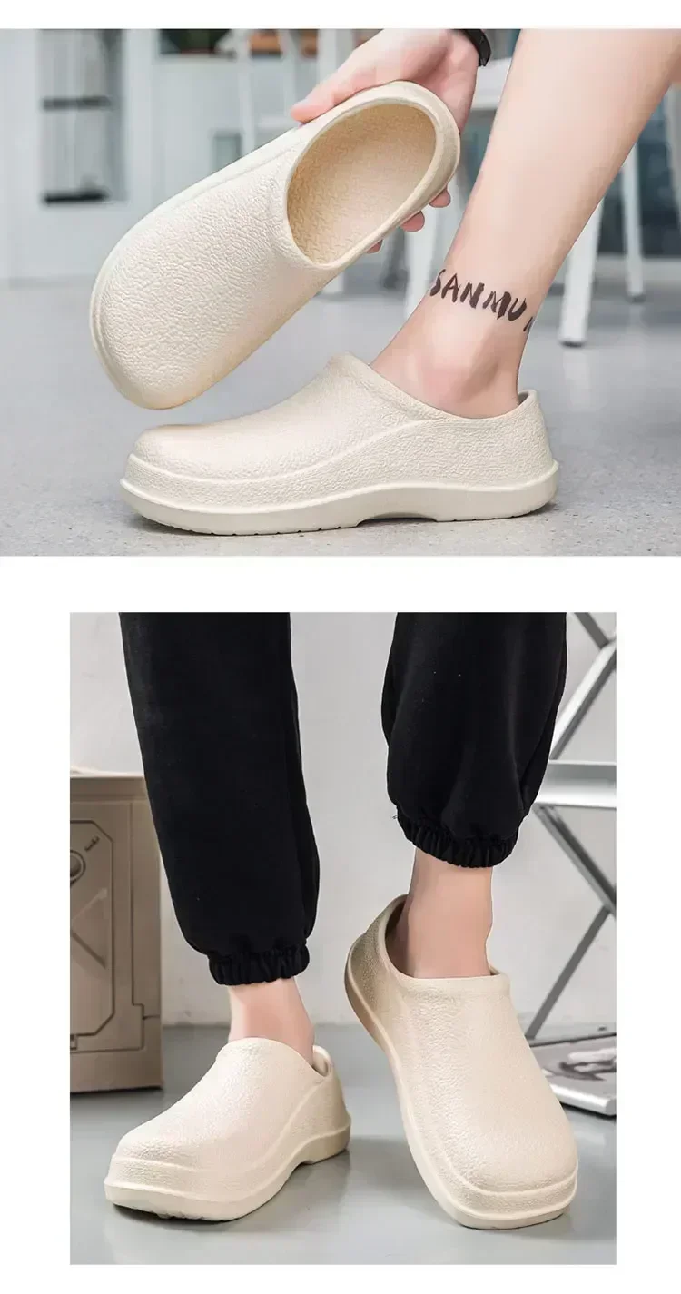 2. Durability and Comfort: Made from EVA, a lightweight, flexible, and durable material, these shoes are designed for long-lasting use. The EVA upper provides comfort, while the material is also resistant to wear and tear. Whether you’re standing for hours in the kitchen or moving around quickly, these shoes will keep you comfortable and protected.